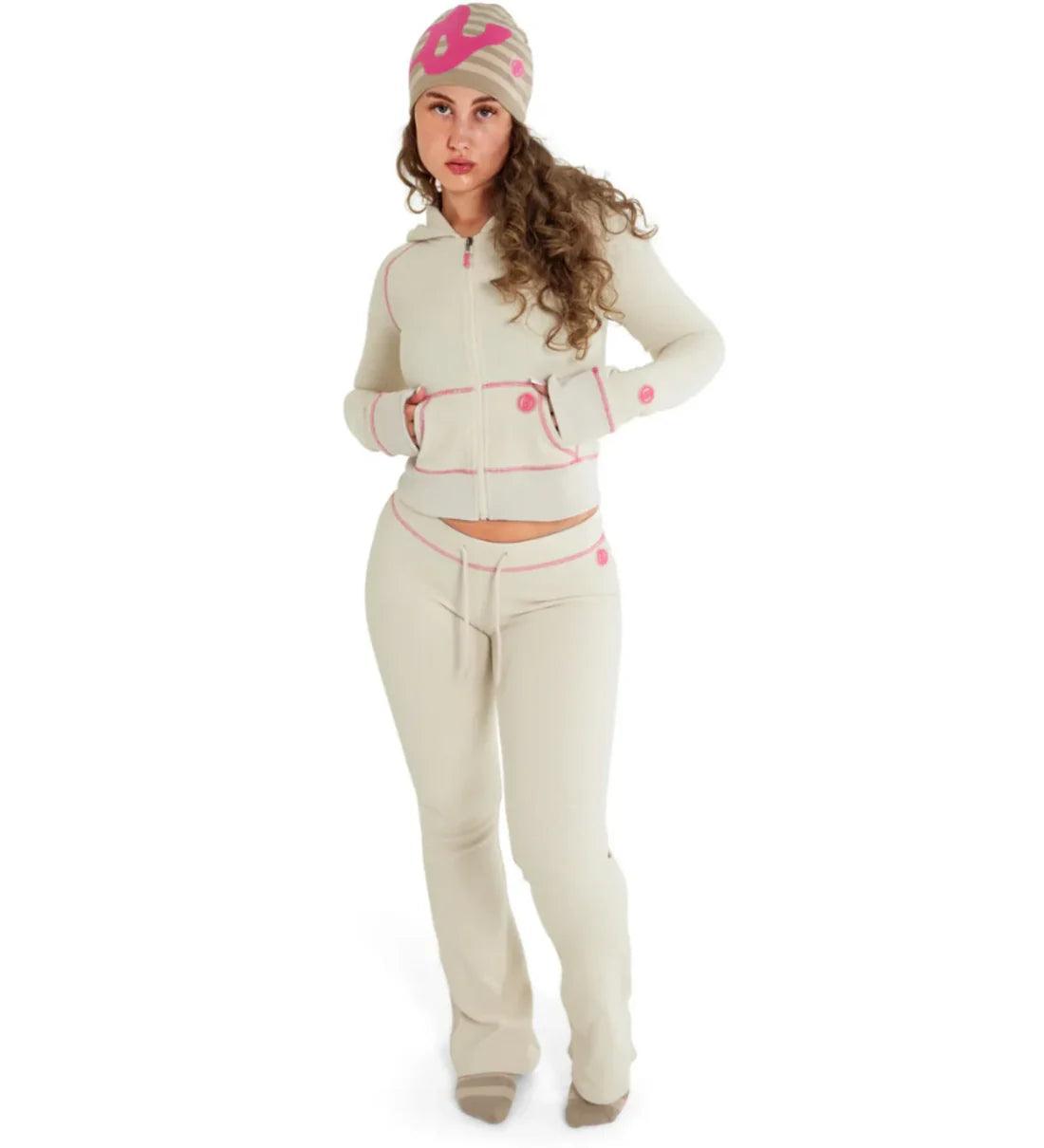 Ribbed cuffs and hems hold shape through use. The texture resists pulling and keeps structure. The ribbed knit ensemble looks clean even after sitting or walking.