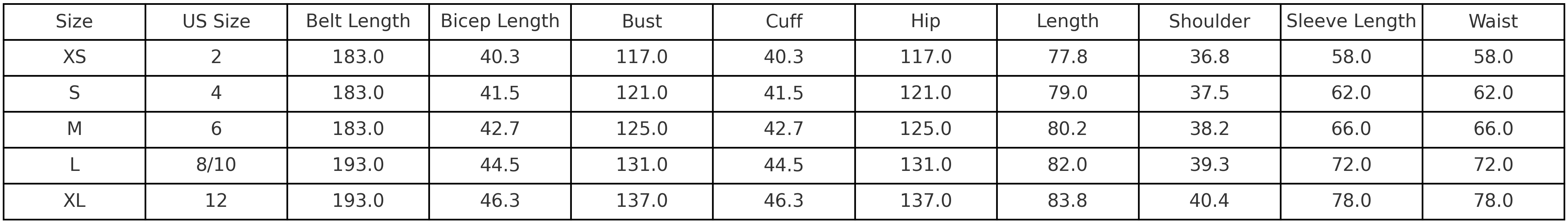 Size Chart (cm):
