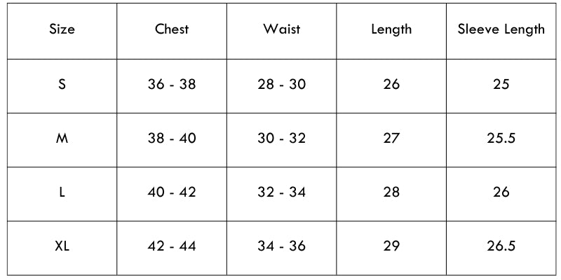 Size Chart (Inches)