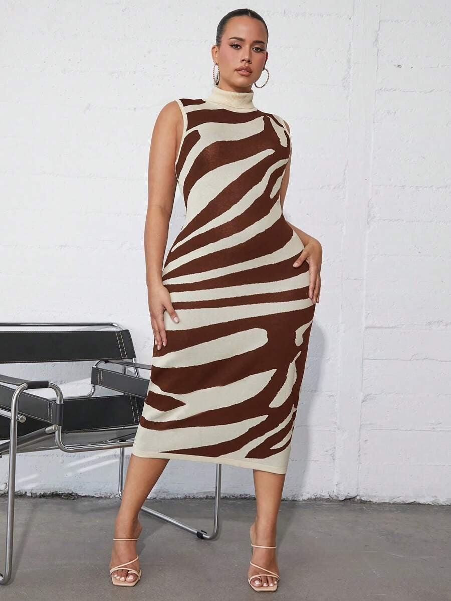 - Zebra Print Knitwear Dress elevates the design with artistic pattern