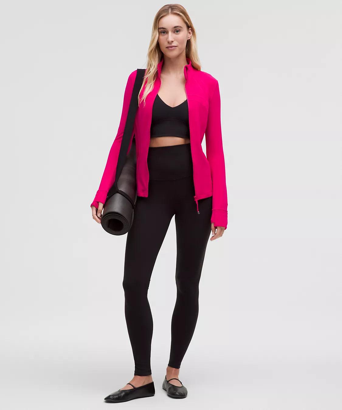 The Jacket blends sculpted design with lightweight comfort. Its moisture-wicking fabric keeps you feeling fresh, even during activity. The contoured fit your natural shape, while the high-collar design and thumbhole cuffs provide added coverage. Whether worn for exercise, errands, or everyday wear, this jacket adapts to your routine.