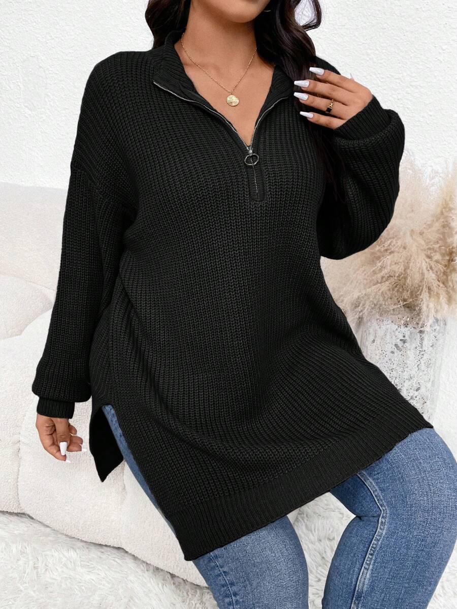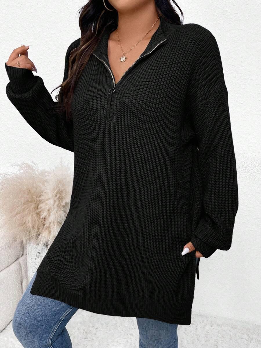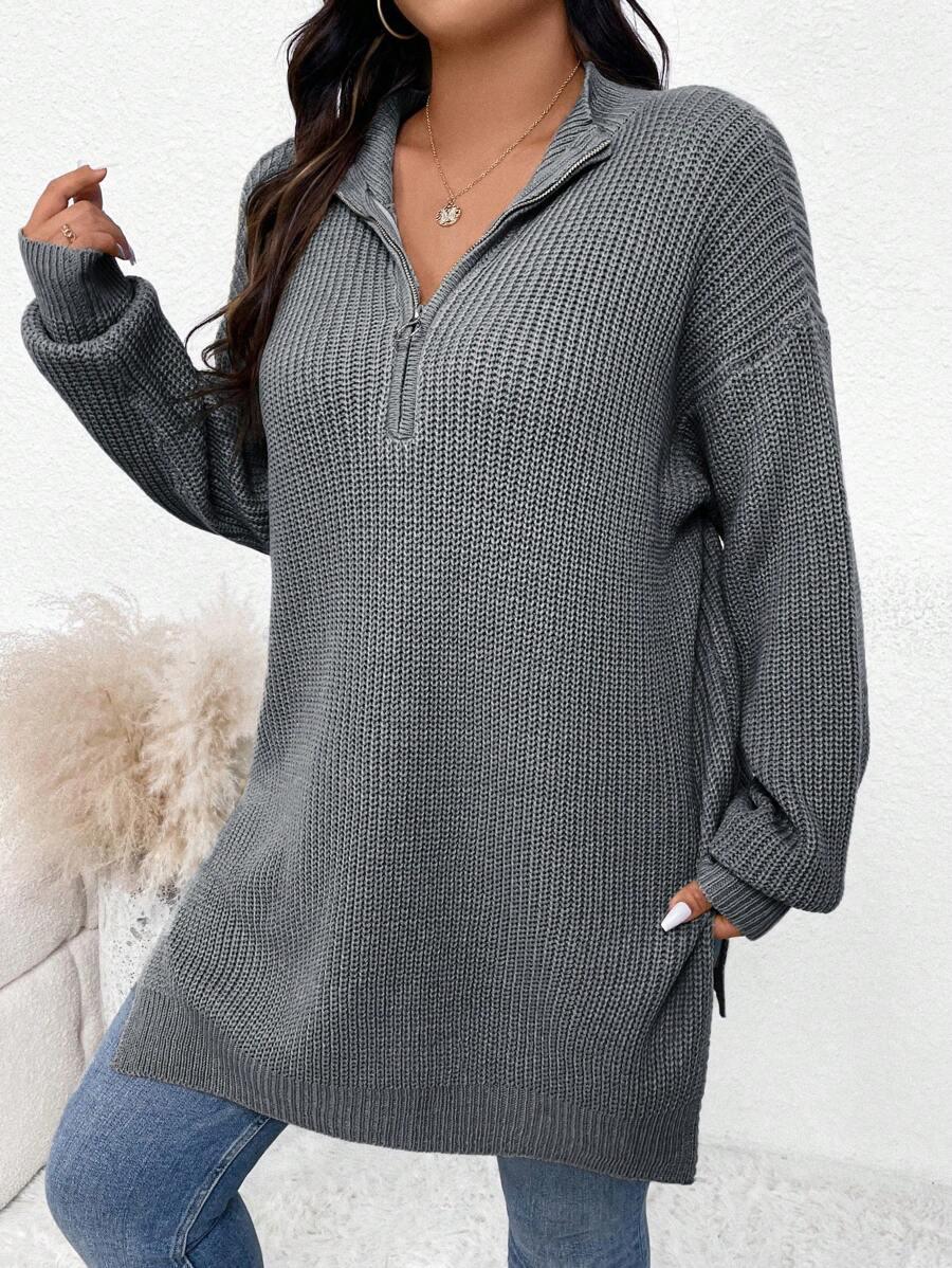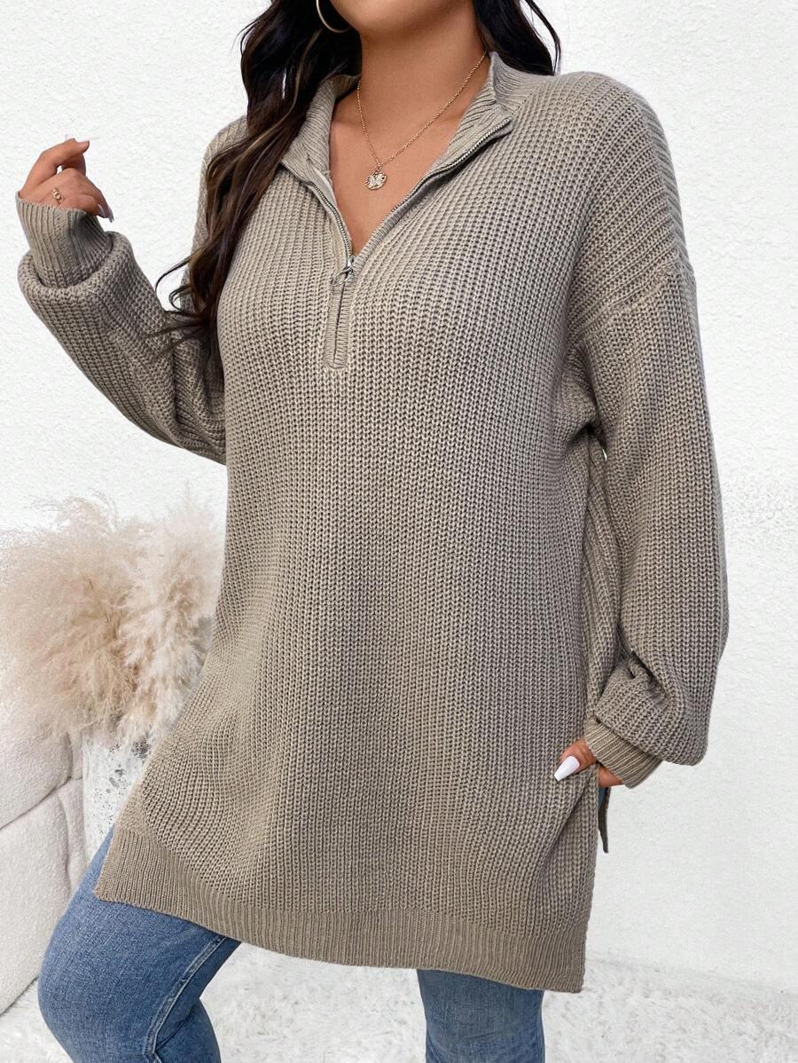 Zipper Front Split Hem Sweater