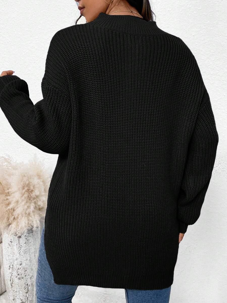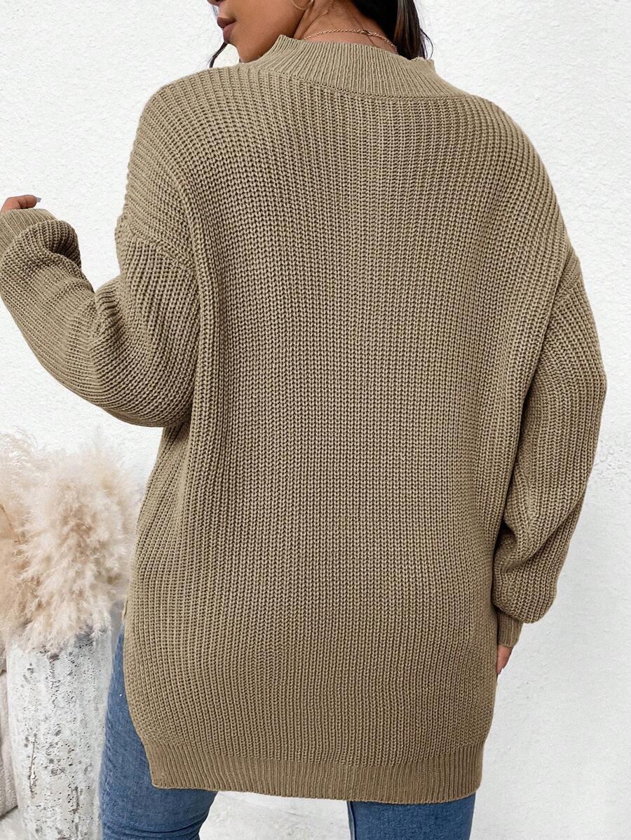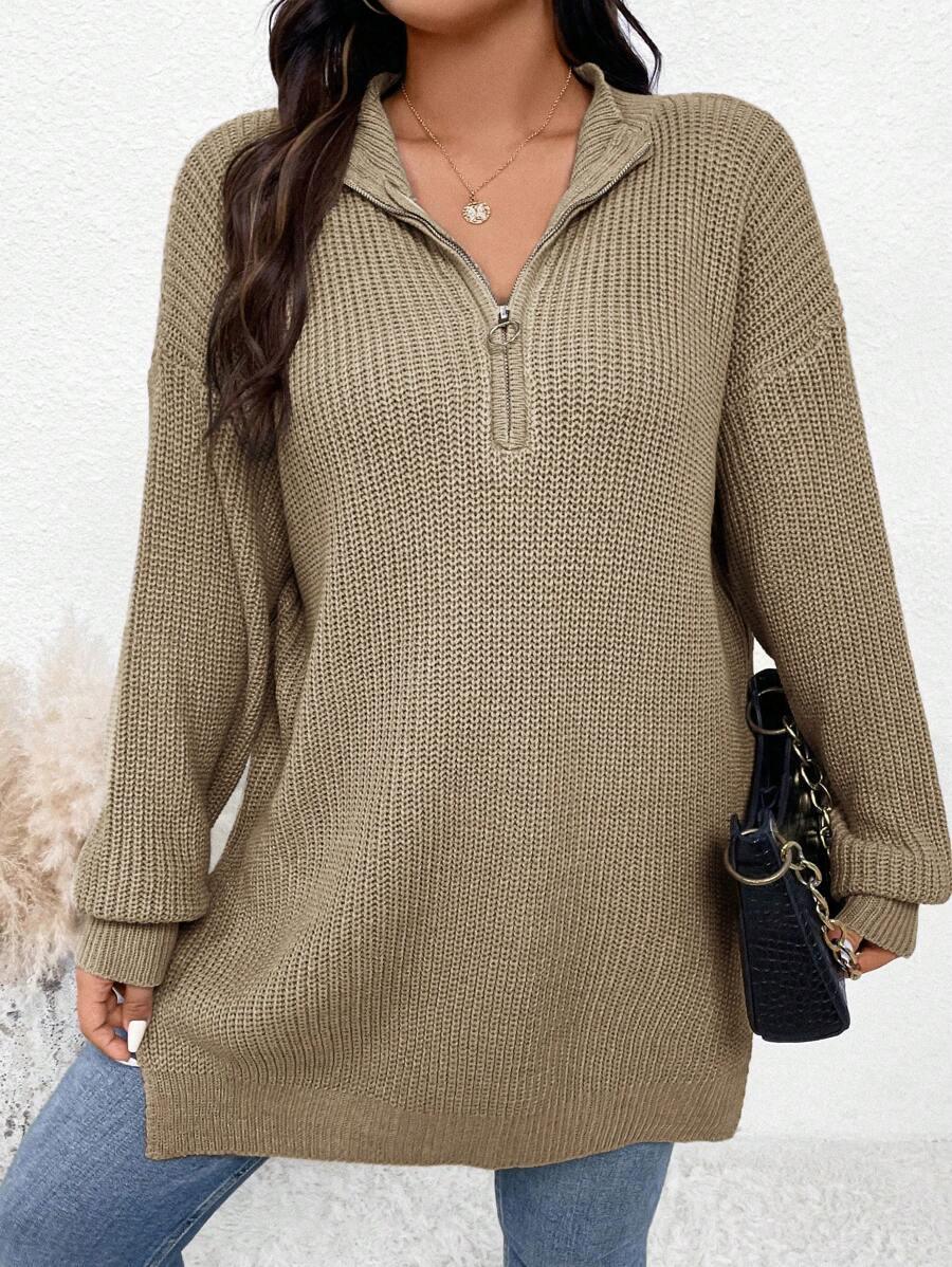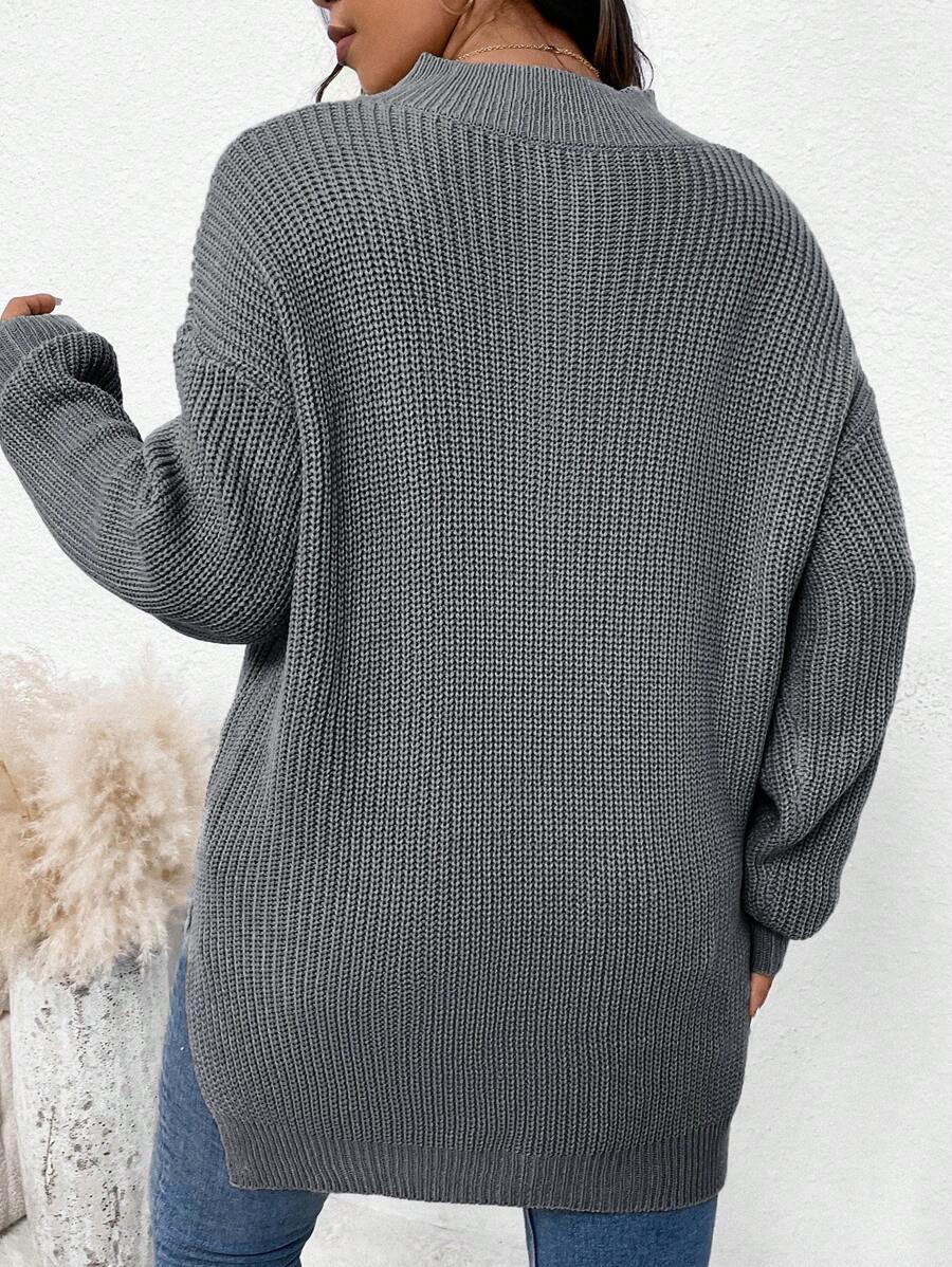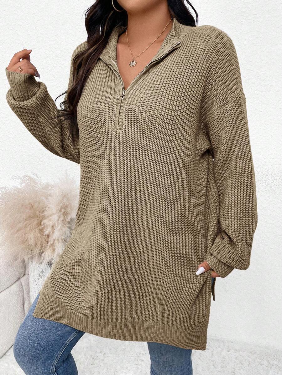 Zipper Front Split Hem Sweater